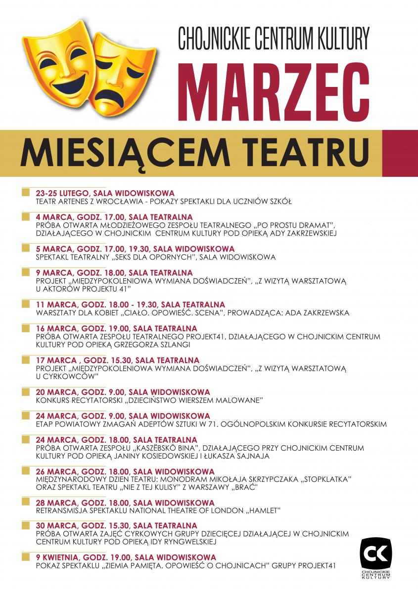 Chojnickie Centrum Kultury zaprasza na coroczne obchody teatru pod postacią przedsięwzięcia "Marzec miesiącem teatru" - które z racji swojej objętoś
