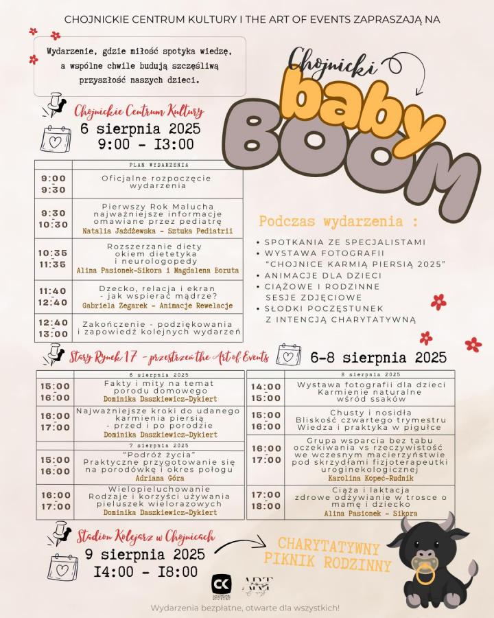 Chojnickie Centrum Kultury i The Art of Events zapraszają 6 sierpnia o godz. 9:00 wszystkich obecnych i przyszłych rodziców na wyjątkowe, bezpłatne wydarzenie pełne wiedzy, inspiracji i wsparcia!