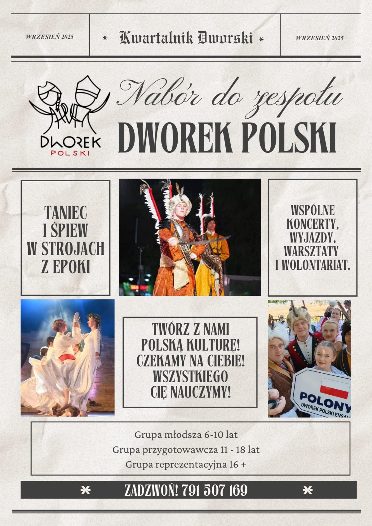 Trwa nabór do zespołu, który tworzą grupa młodsza (6-10 lat), grupa przygotowawcza (11 do 18 lat), grupa reprezentacyjna (od 16 roku życia).