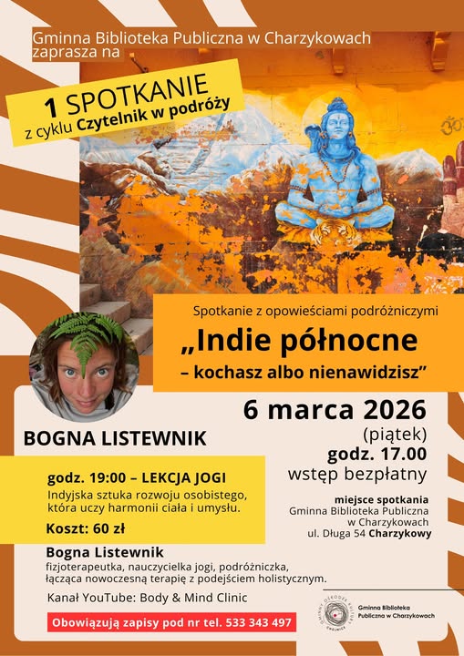 Biblioteka Publiczna w Charzykowach zapraszama na spotkanie podróżnicze 6 marca o godzinie 17:00
