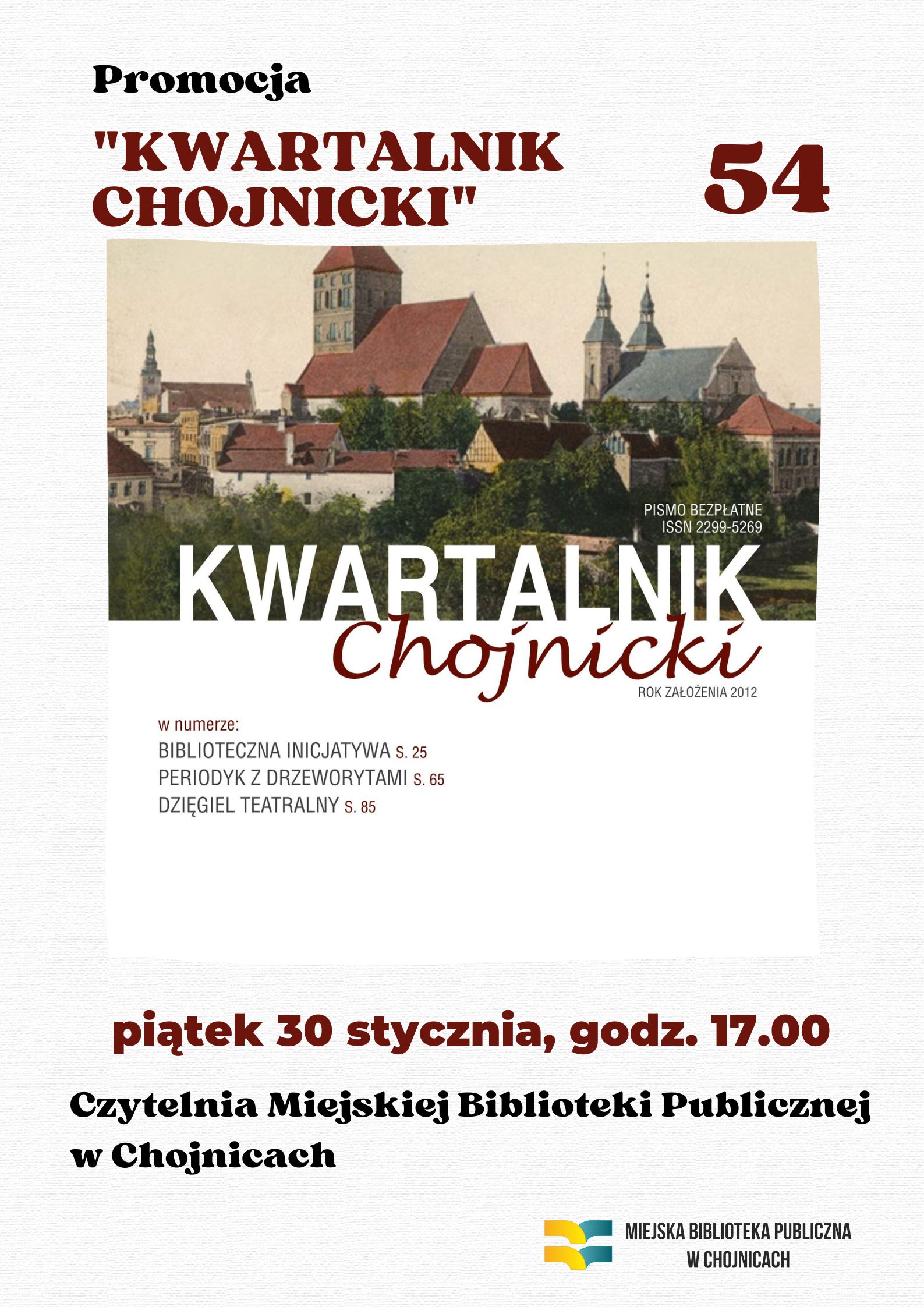W piątek 30 stycznia 2026 roku odbędzie się prezentacja 54. numeru „Kwartalnika Chojnickiego”, wydawanego przez Miejską Bibliotekę Publiczną w Chojnicach