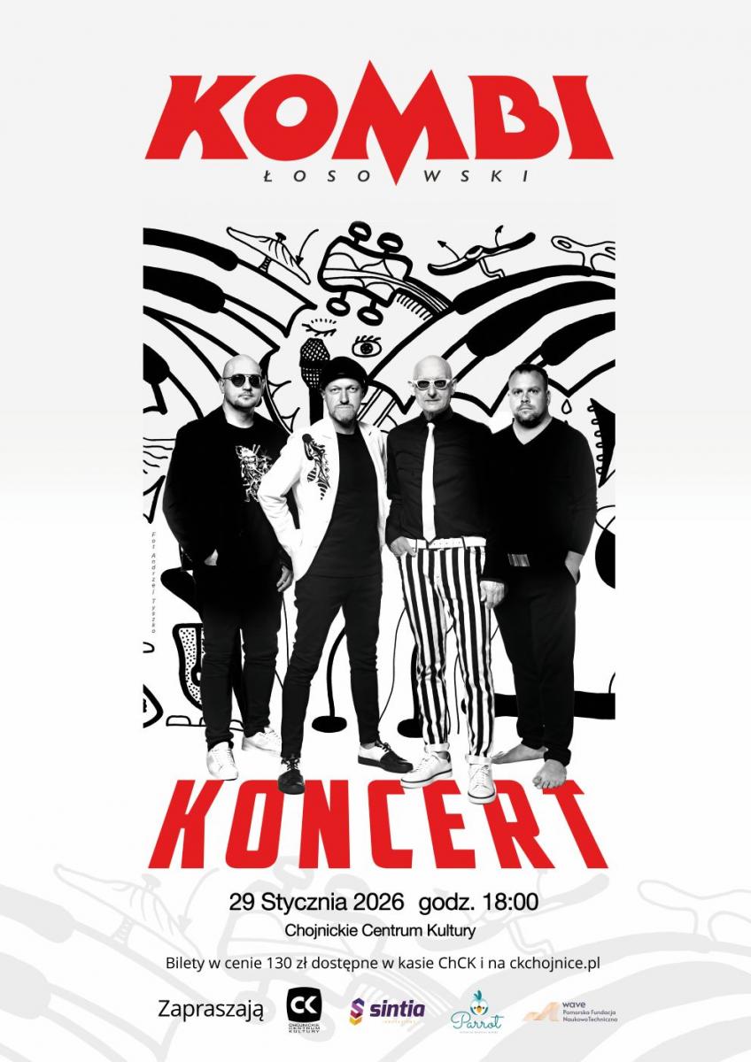 29 stycznia na scenie Chojnickiego Centrum Kultury zagra zespół KOMBI Łosowski. Bilety do kupienia w kasie Chojnickiego Centrum Kultury oraz przez Internet