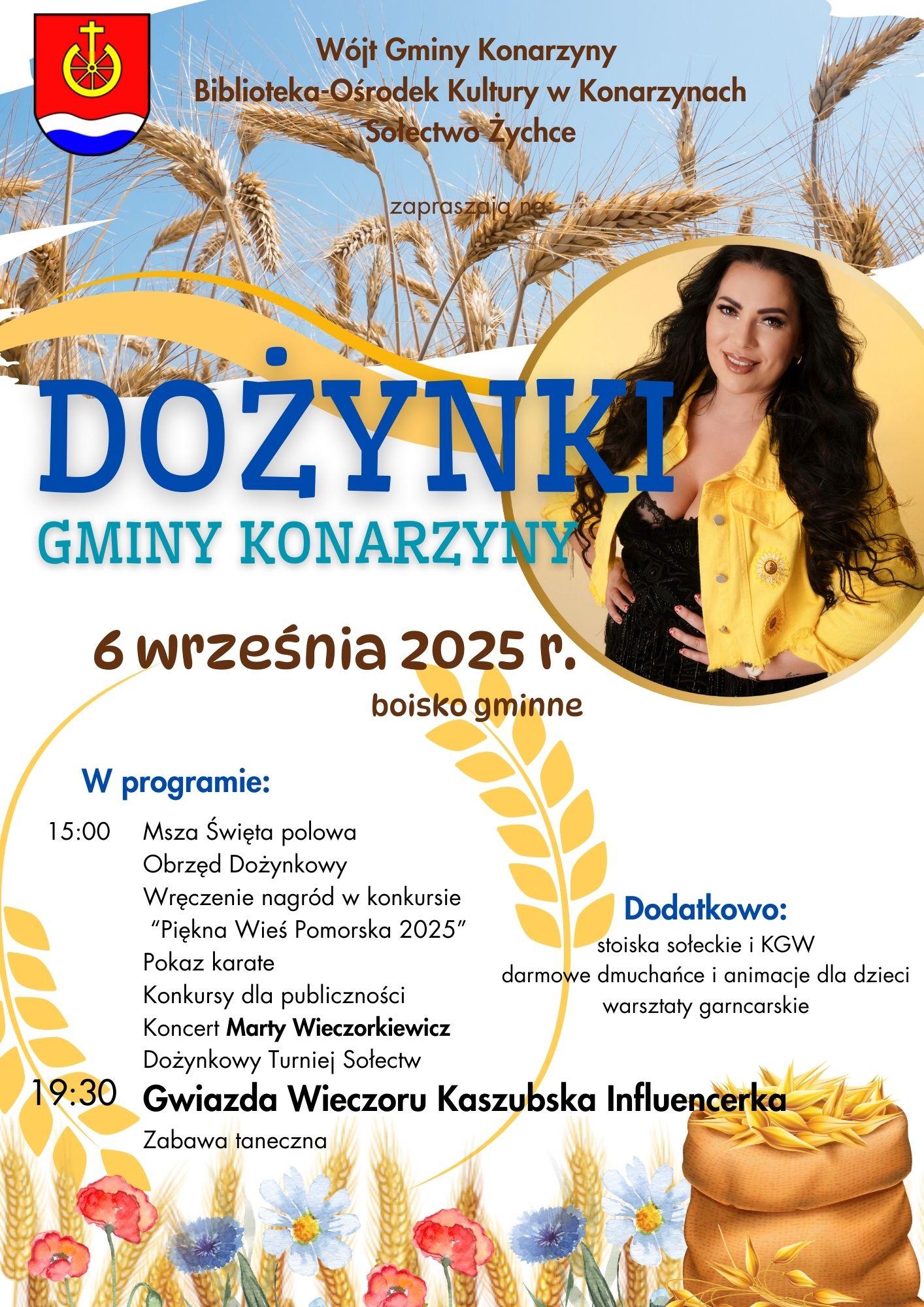 Zapraszamy na Dożynki Gminne 6 września 2025 r. do Konarzyn. Start od godziny 15:00