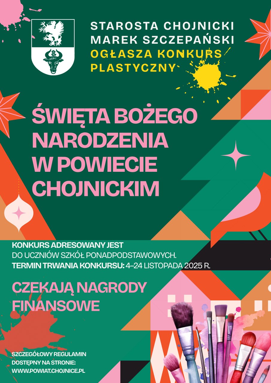 Starosta Chojnicki Marek Szczepański zaprasza uczniów szkół ponadpodstawowych z terenu naszego powiatu do udziału w wyjątkowym konkursie plastycznym.
