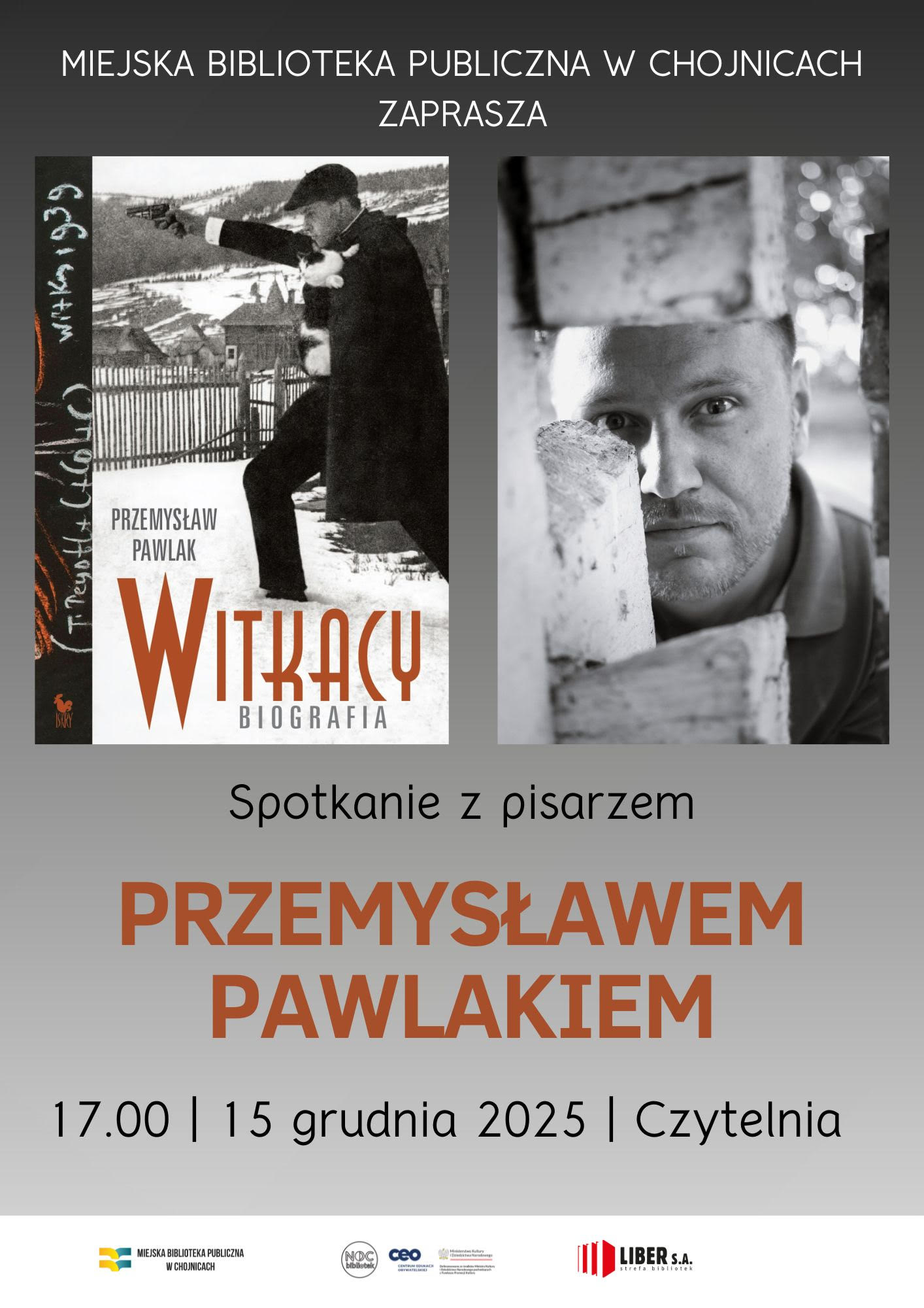 Miejska Biblioteka Publiczna w Chojnicach zaprasza na spotkanie z pisarzem Przemysławem Pawlakiem, autorem książki „Witkacy. Biografia”. Odbędzie się ono w poniedziałek 15 grudnia o godz. 17.00 w Czytelni. Spotkanie to jest nagrodą, którą biblioteka otrzymała za relację z tegorocznej Nocy Bibliotek. Rozmowę poprowadzi historyk Robert Kozłowski. Współorganizatorem wydarzenia jest Centrum Edukacji Obywatelskiej, a partnerem firma Liber SA. Dofinansowane zostało ze środków Ministra Kultury i Dziedzictwa Narodowego pochodzących z Funduszu Promocji Kultury.