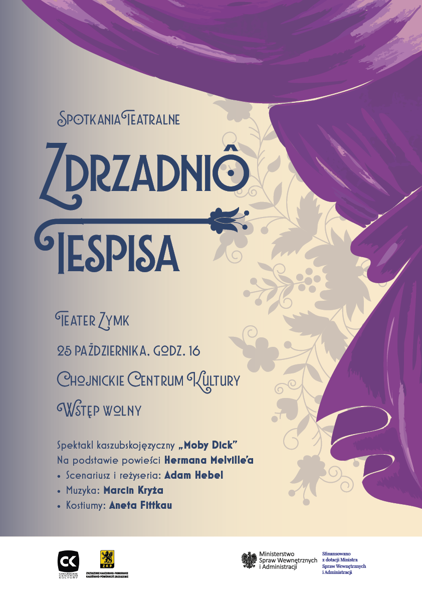 Chojnickie Centrum Kultury oraz Zrzeszenie Kaszubsko-Pomorskie serdecznie zaprasza na spotkanie z teatrem kaszubskim "Zdrzadnio Tespisa". 25 października o godzinie 16.00.