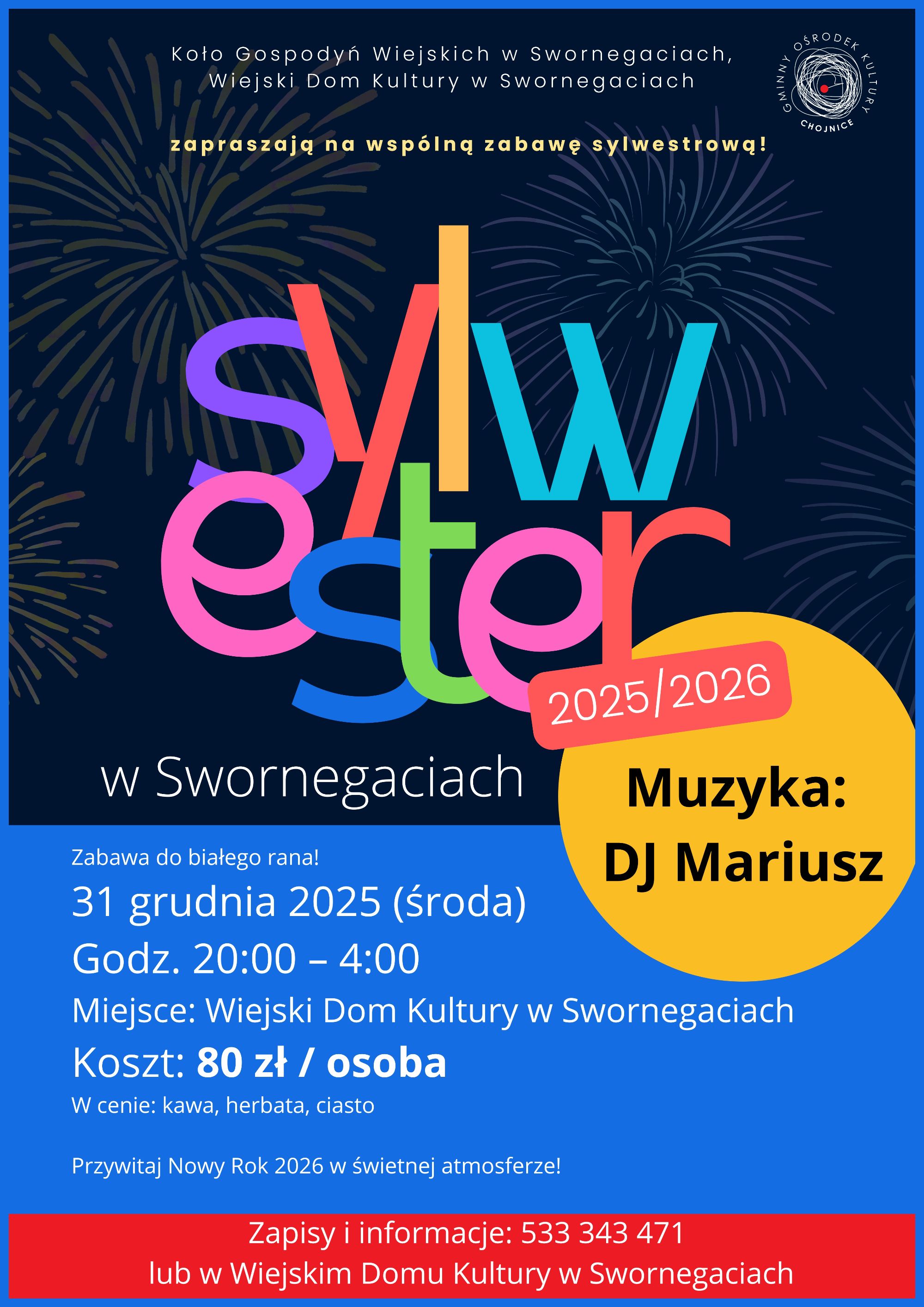 oraz Wiejski Dom Kultury w Swornegaciach zapraszają na wspólną zabawę sylwestrową!