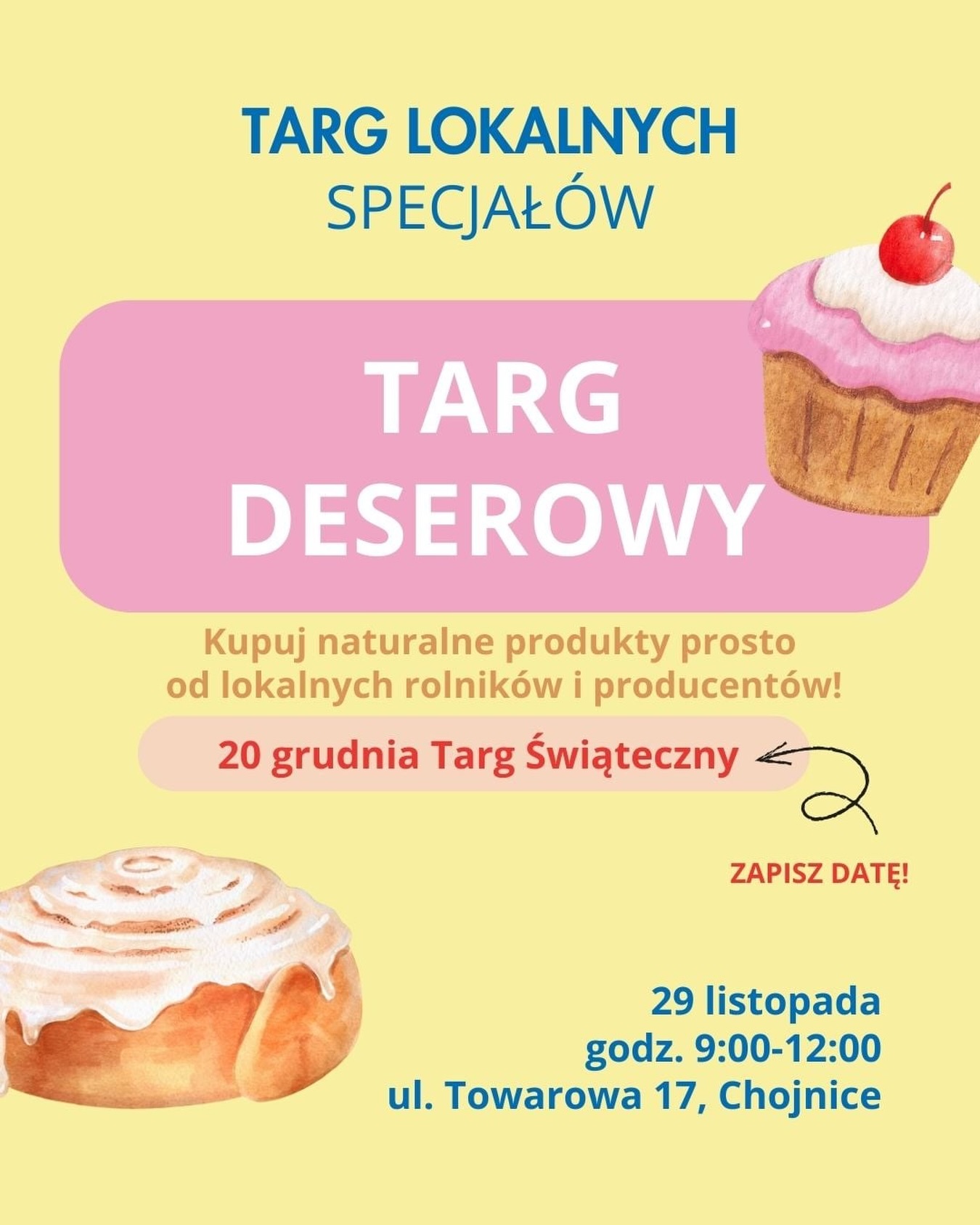 Zapraszamy 29 lispopada na kolejną edycje Targu Lokalnych Specjałów tym razem będzię to edycja Deserowa.