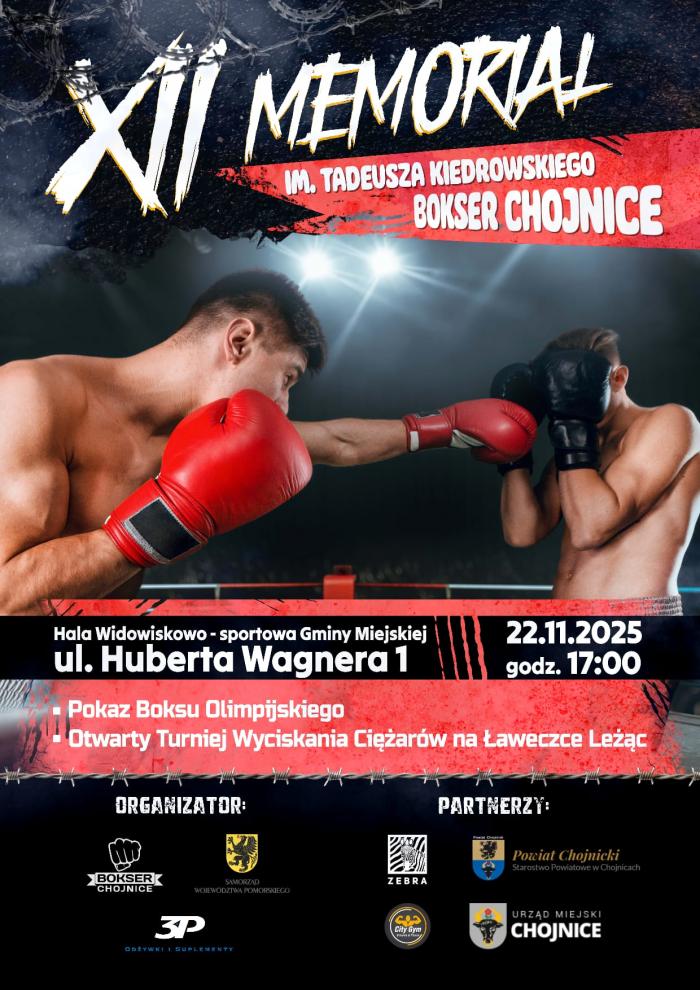 22 listopada w Chojnicach odbędzie się 12. Memoriał im. Tadeusza Kiedrowskiego. Tegoroczna odsłona wydarzenia przyniesie pokaz boksu olimpijskiego z otwartym turniejem siłaczy w wyciskaniu sztangi leżąc.